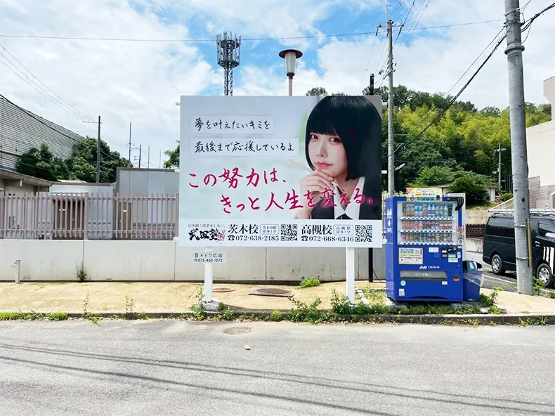 学習塾を開校しているエリア付近の進学校校門前に、看板広告を設置しました。